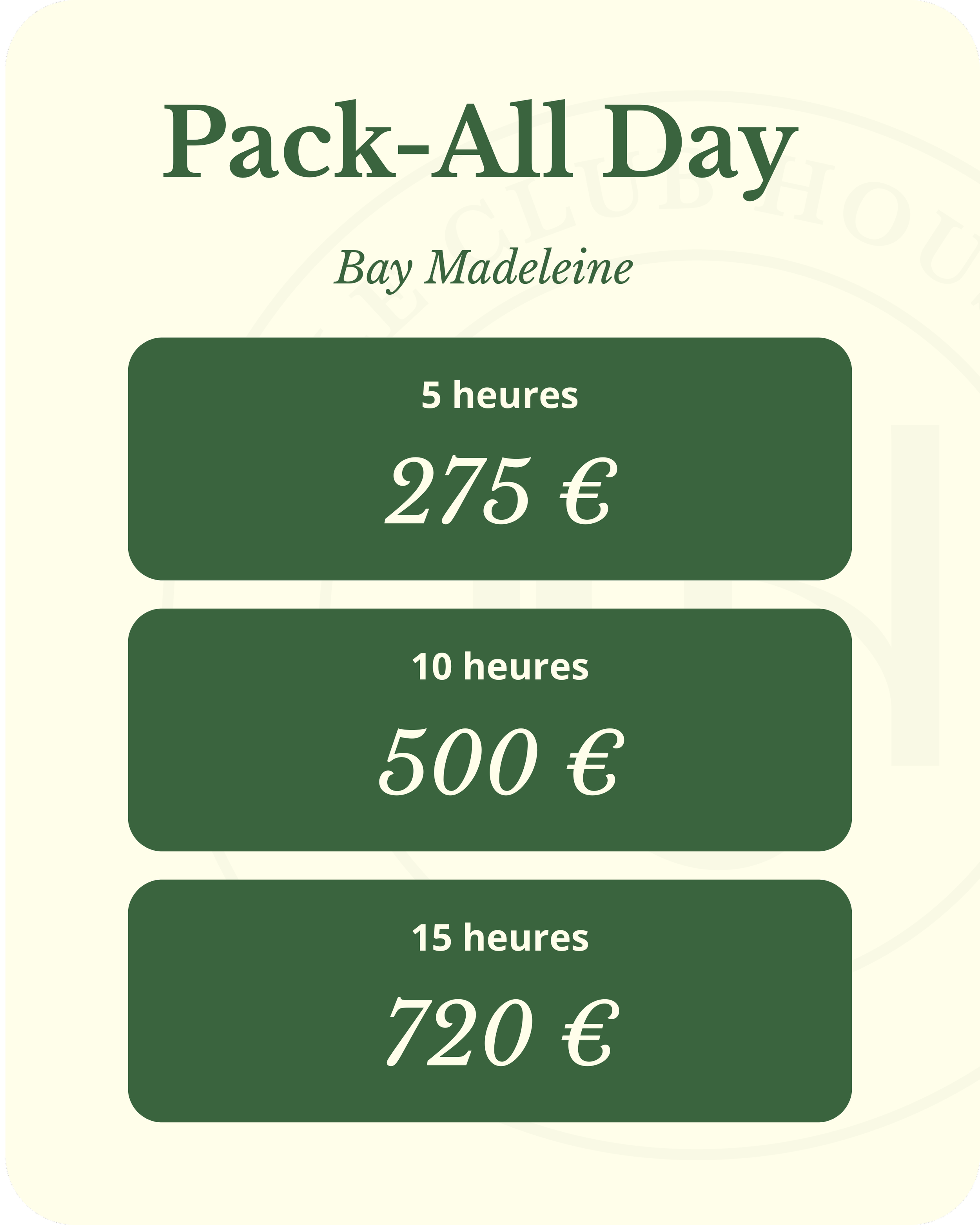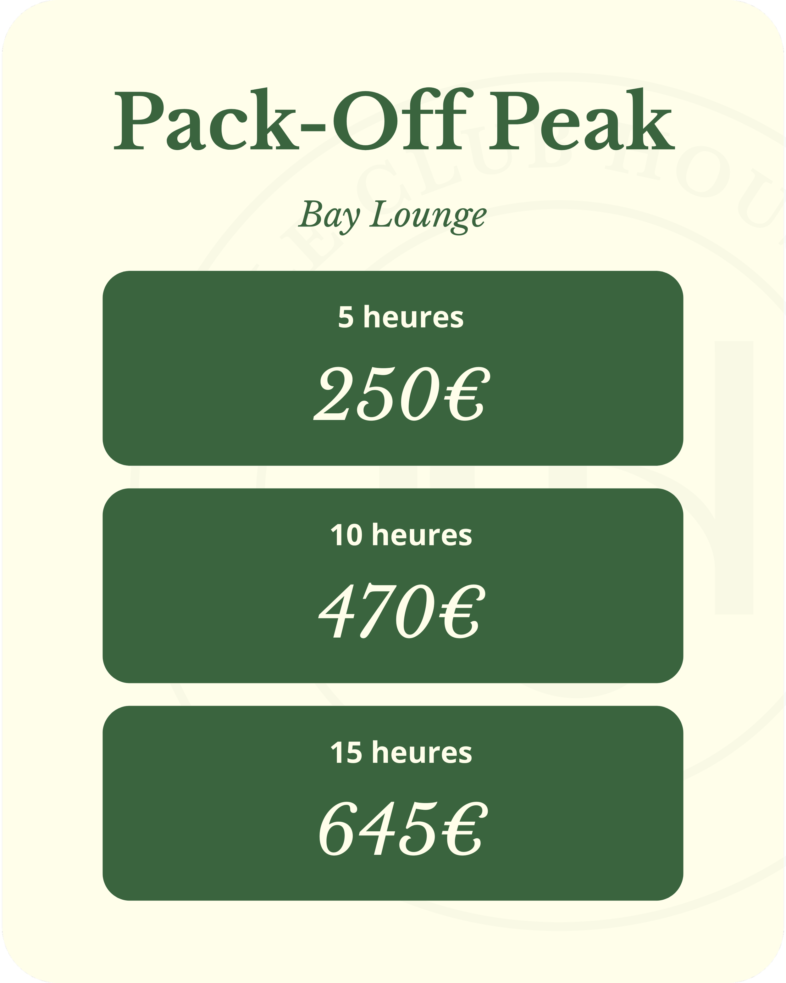 *Les abonnements sont individuels, chaque accompagnant d'un membre sera facturé 15 € par heure.